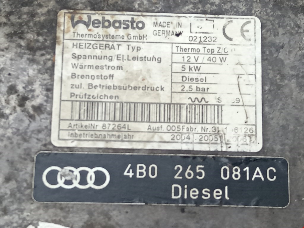 Отопитель автономный (предпусковой подогреватель вебасто и прочие) Audi A6 C5 (1997-2005), 2004