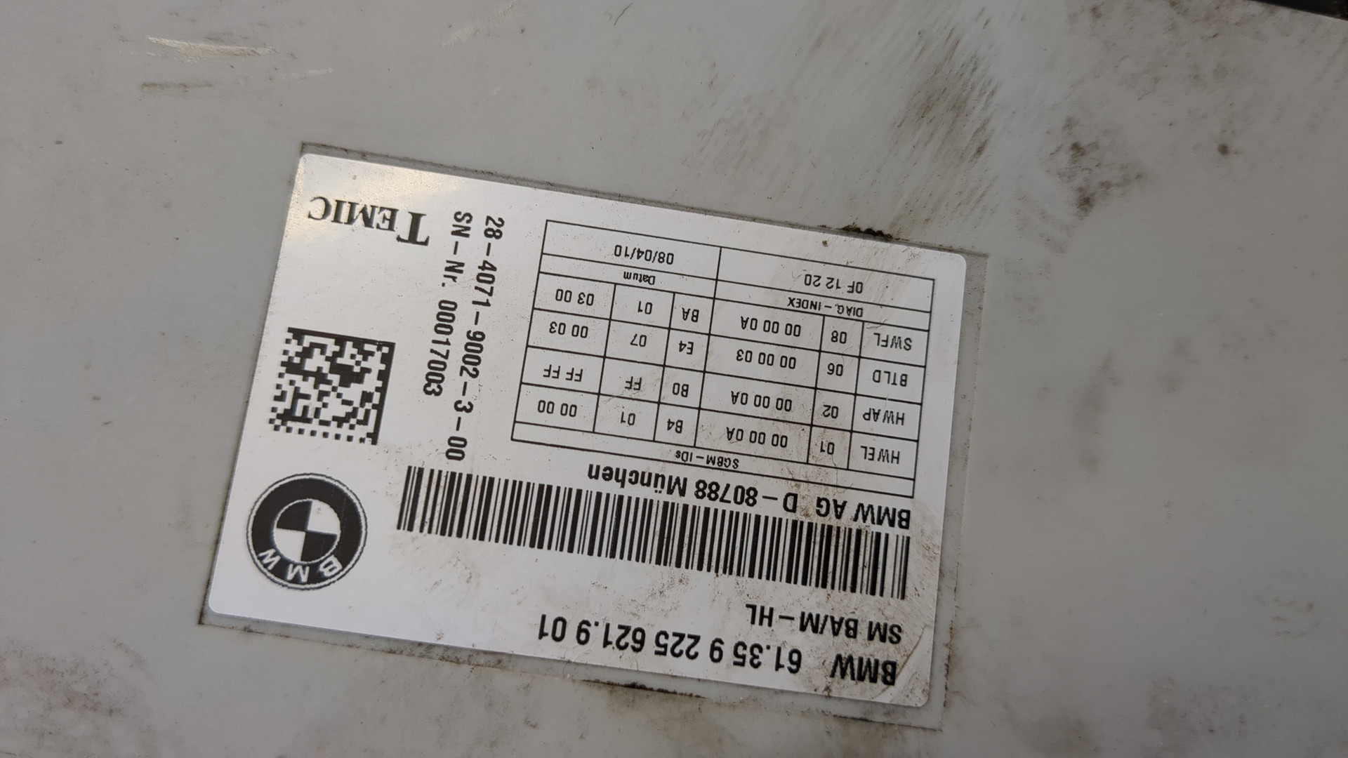 - Номера запчасти: 61359221464