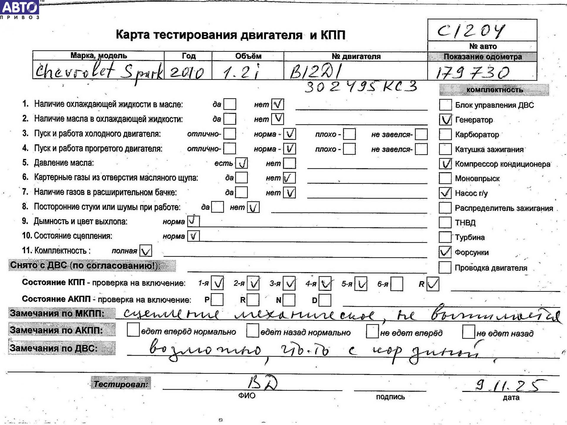 Двигатель Chevrolet Spark, 2010