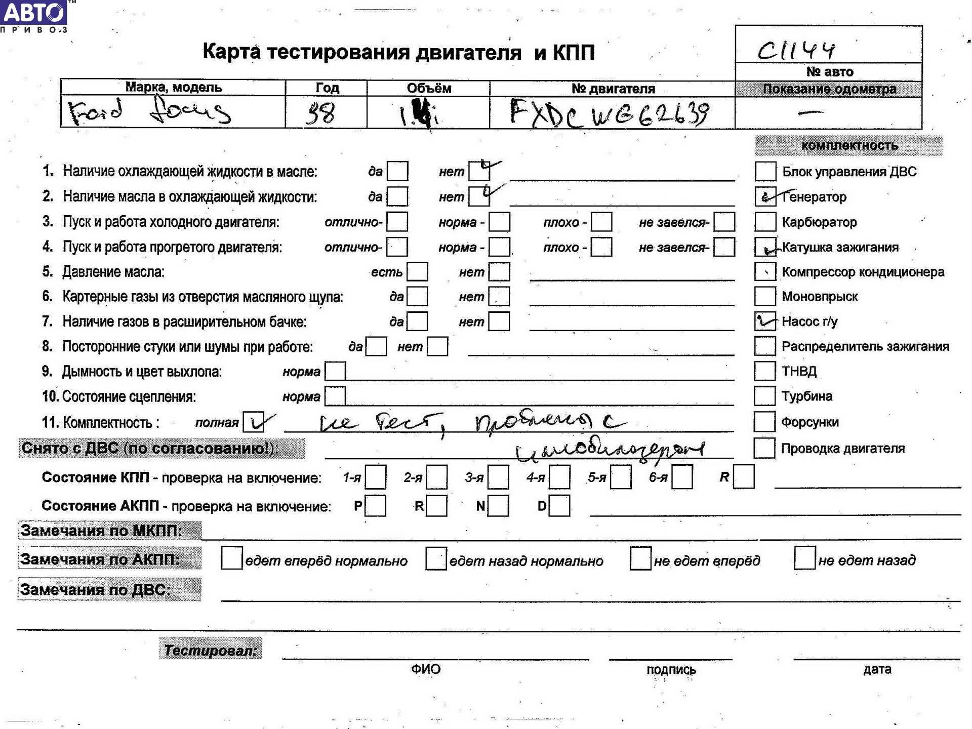 Двигатель Ford Focus, 2003