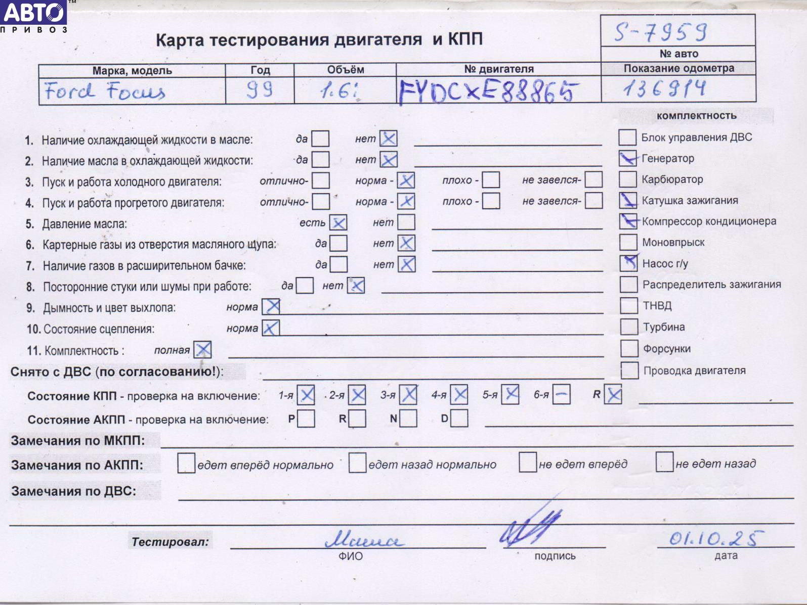 Двигатель Ford Focus 1 (1998-2005), 2001