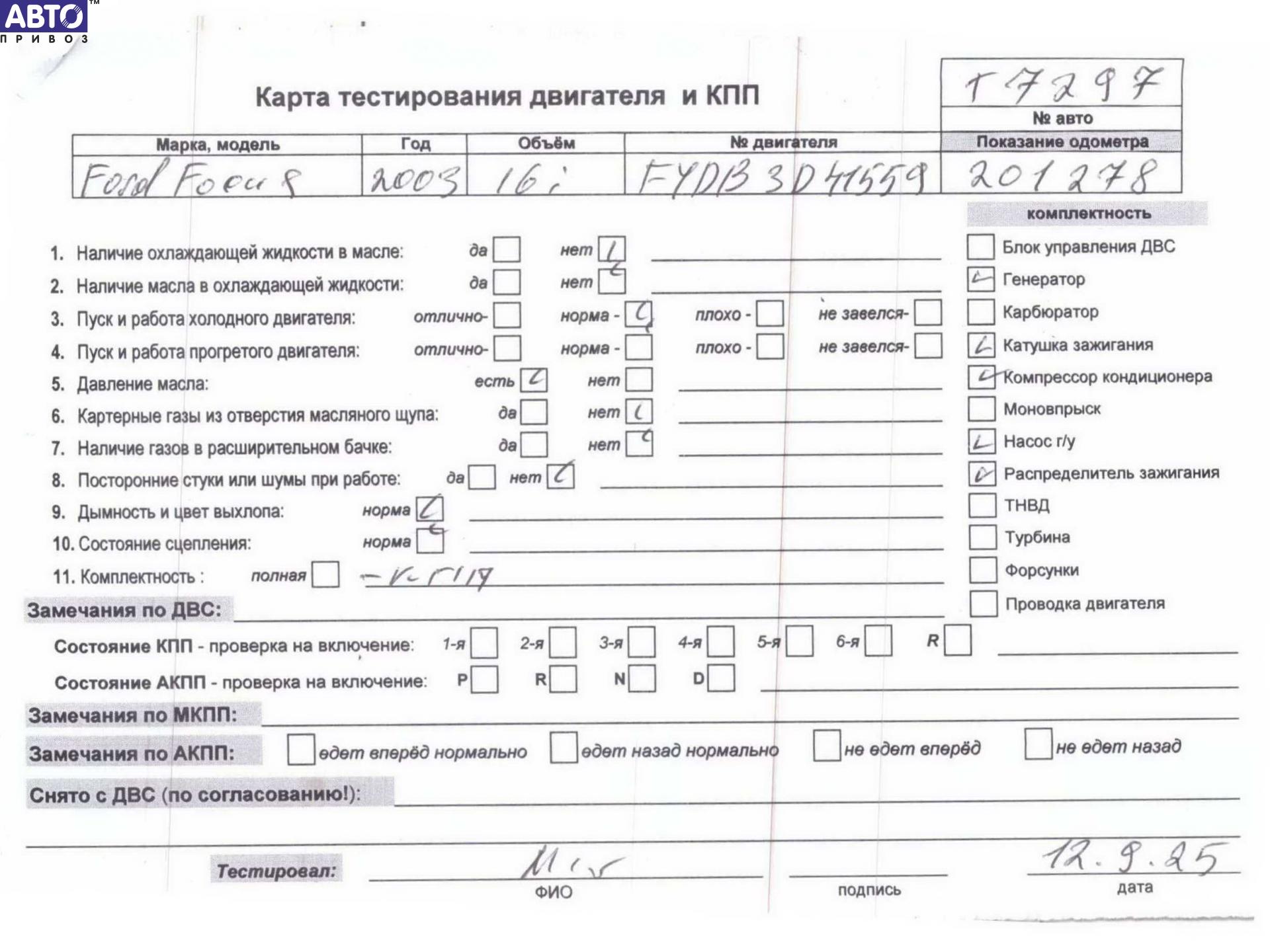 Двигатель Ford Focus 1 (1998-2005), 2003