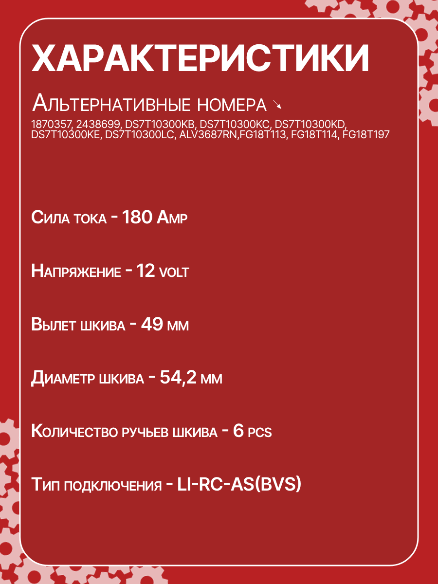 - Номера запчасти: 1870357 2438699 DS7T10300KB DS7T10300KC DS7T10300KD DS7T10300KE DS7T10300LC ALV3687RN FG18T113 FG18T114 FG18T197