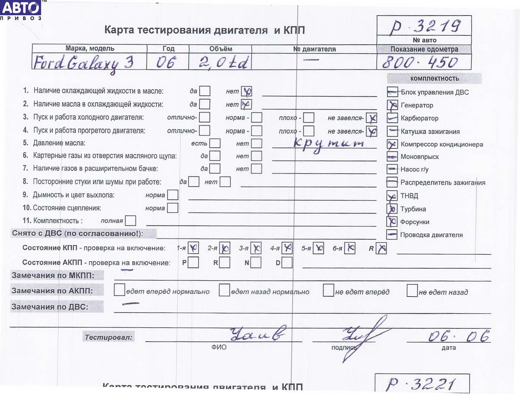Двигатель Ford Galaxy, 2006