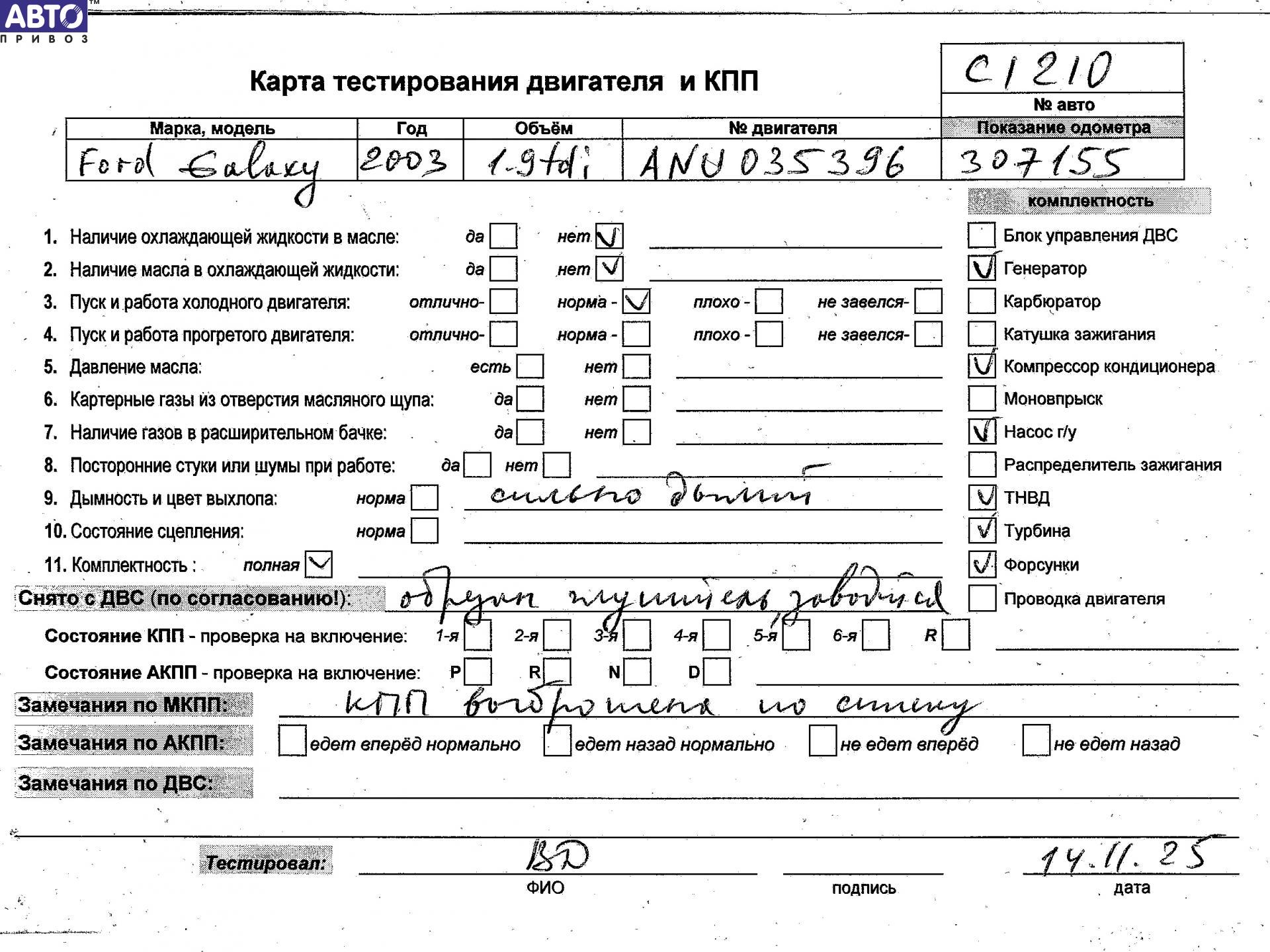 Двигатель Ford Galaxy (2000-2006), 2003