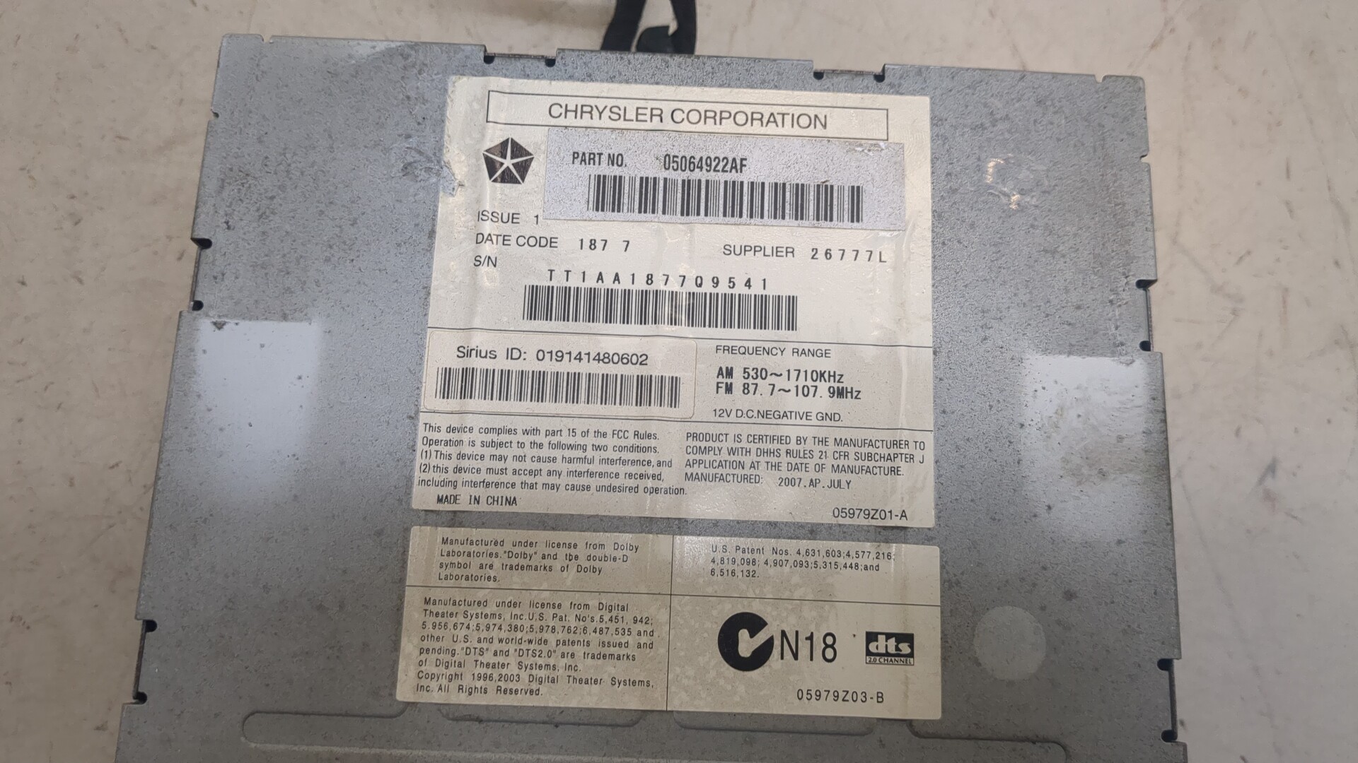- Номера запчасти: 05064922AF