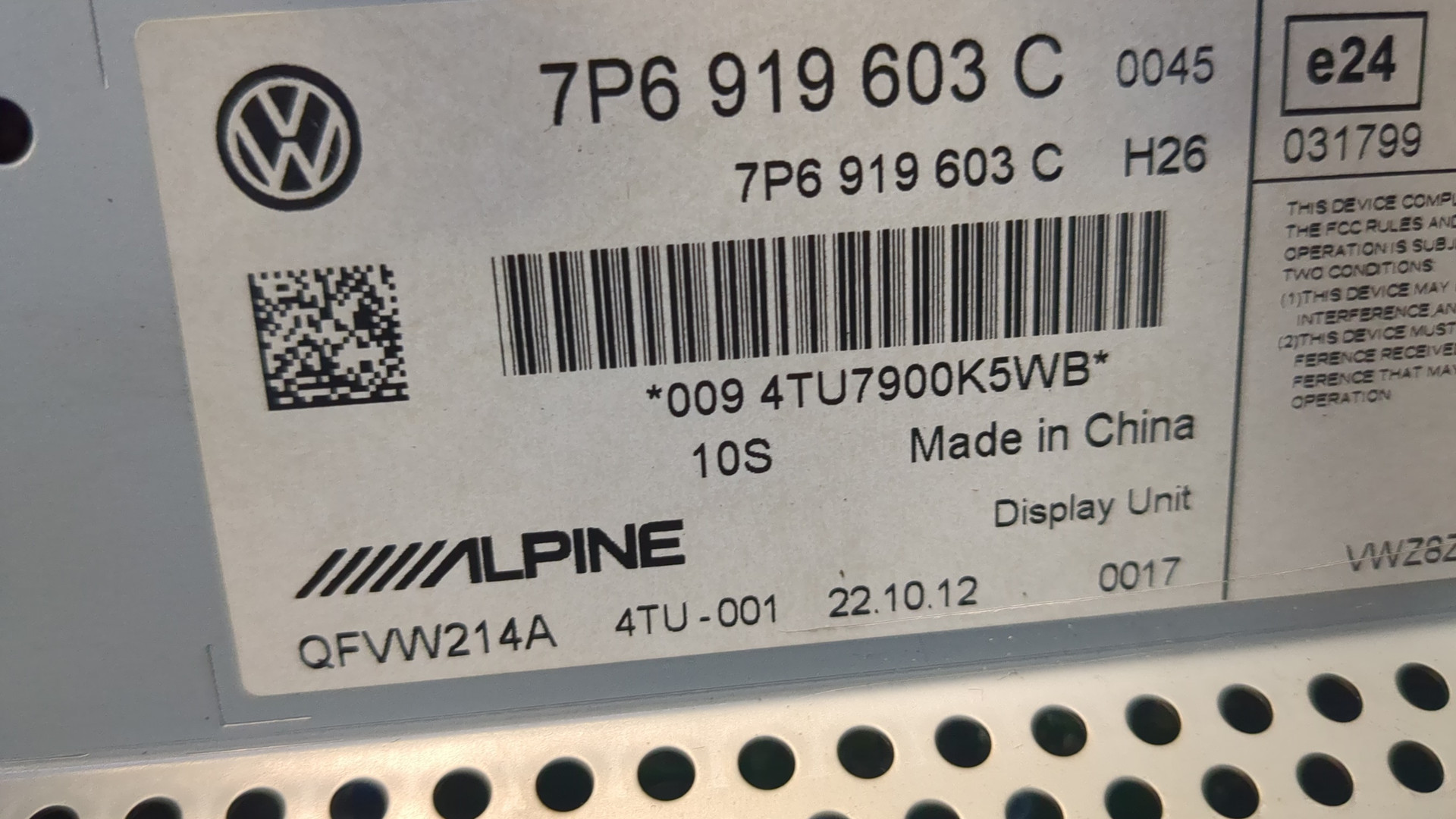 - Номера запчасти: 7P6919603C