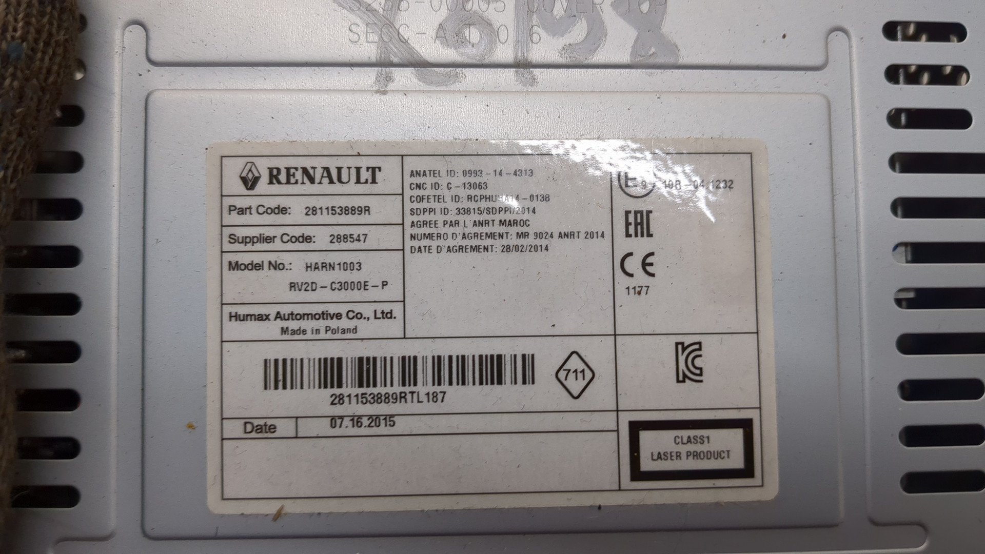 Магнитола Dacia Logan 2012-2016, 2015