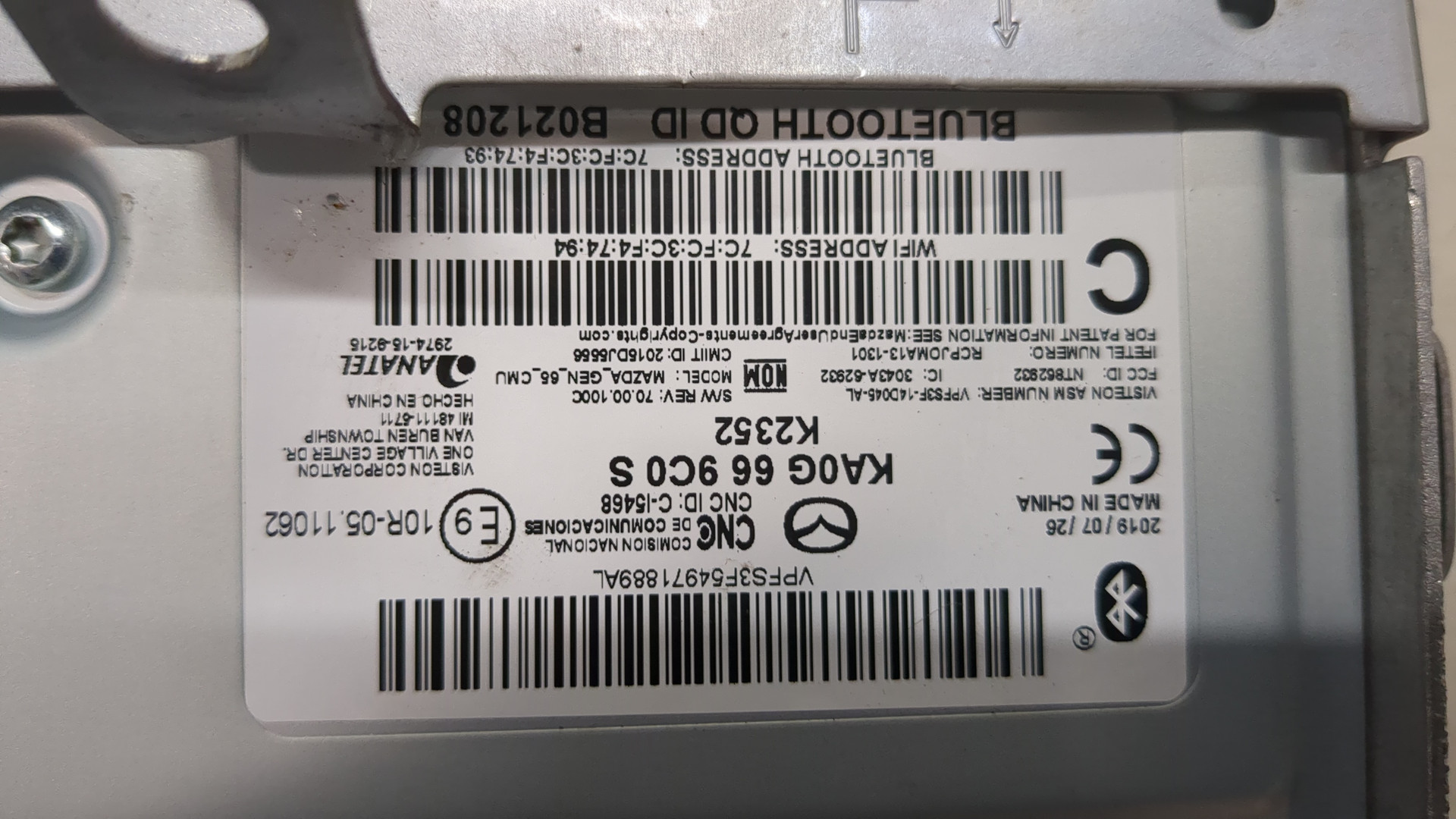 Дисплей компьютера Mazda 6, 2016