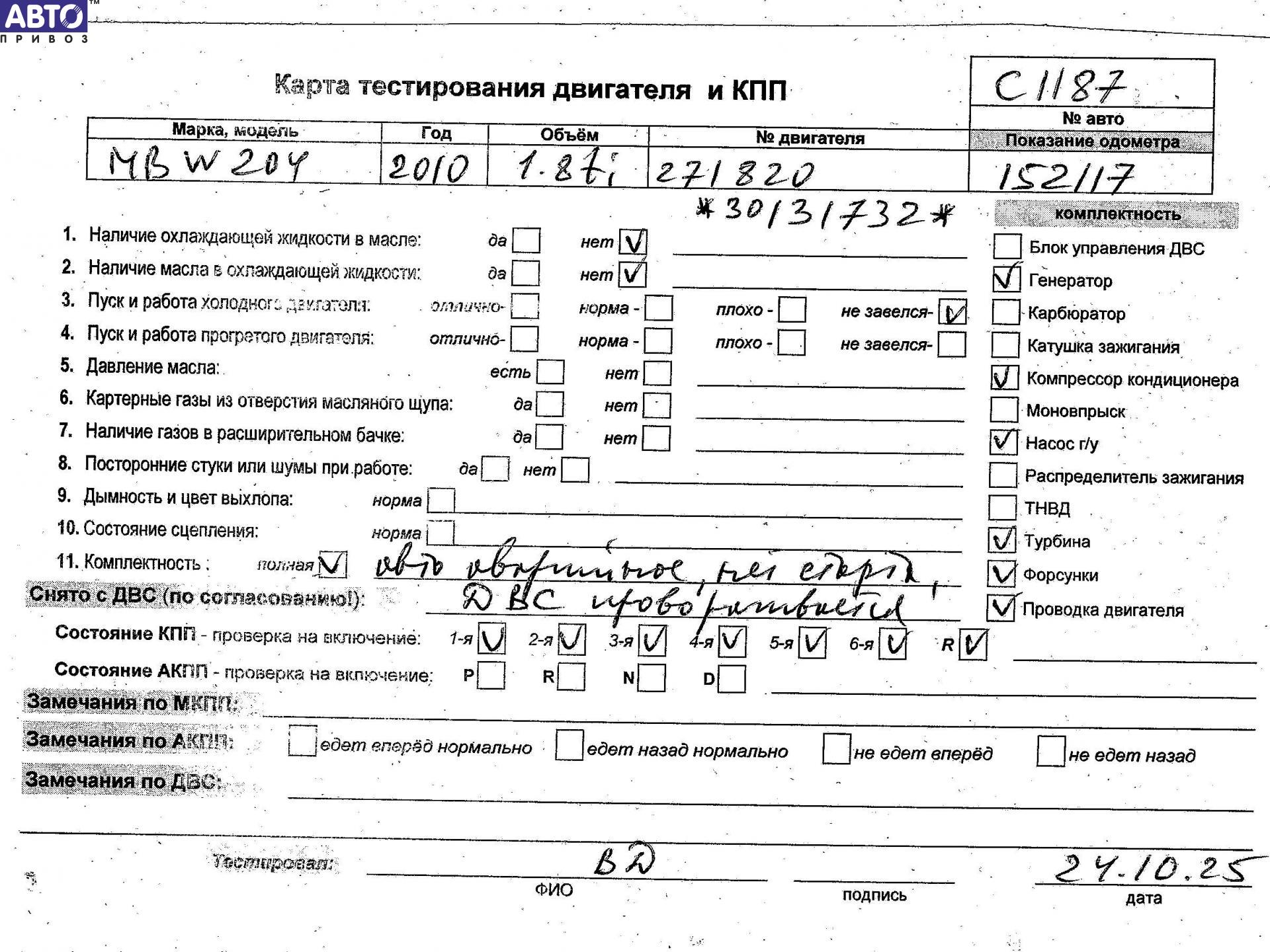 Двигатель mercedes-benz w204, 2007