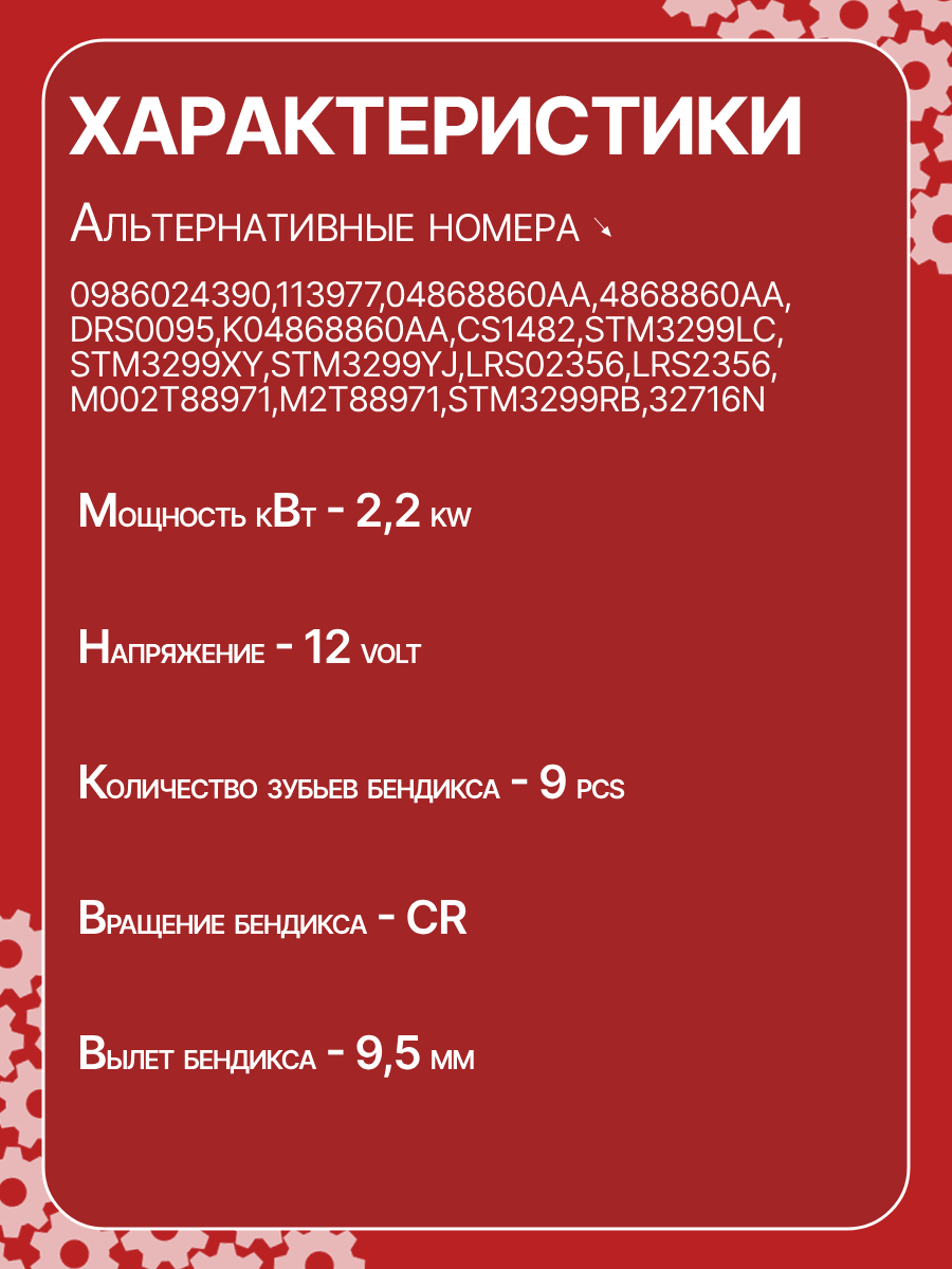 - Номера запчасти: 04868860AA4868860AA0986024390113977DRS0095K04868860AACS1482STM3299LCSTM3299XYSTM3299YJLRS02356LRS2356M002T88971M2T88971M2T88971ZCSTM3299RBSTM3299WA32716N300N11290Z