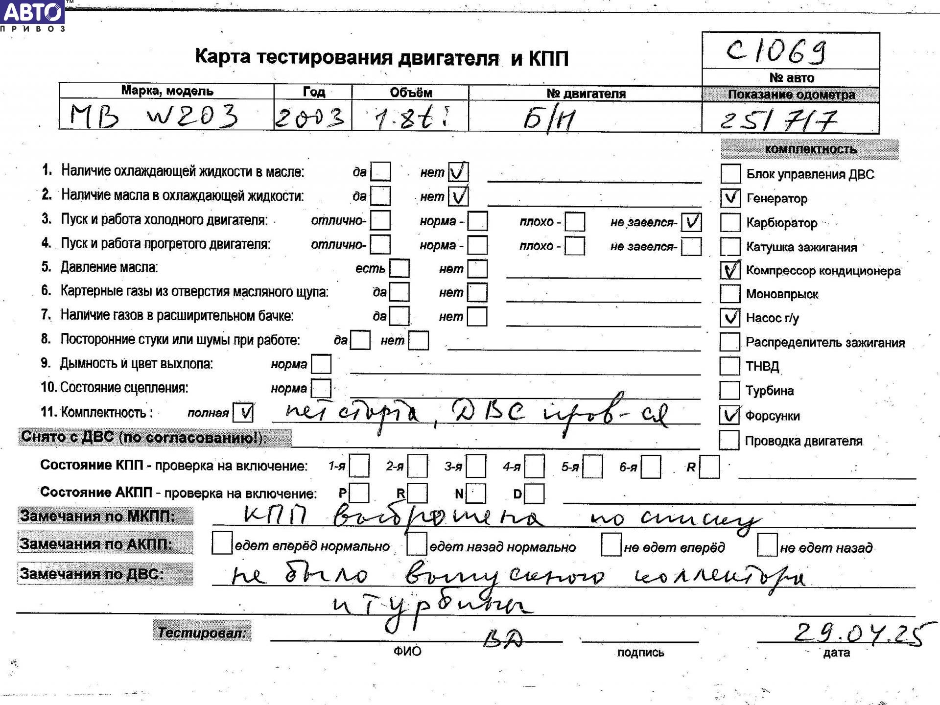 Двигатель Mercedes C W203 2000-2008, 2002
