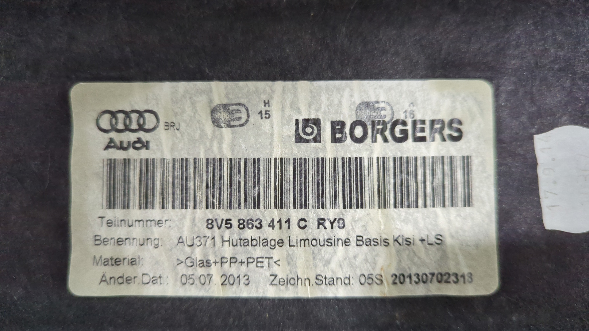 Полка багажника Audi A3 (8V) 2012-2020, 2015