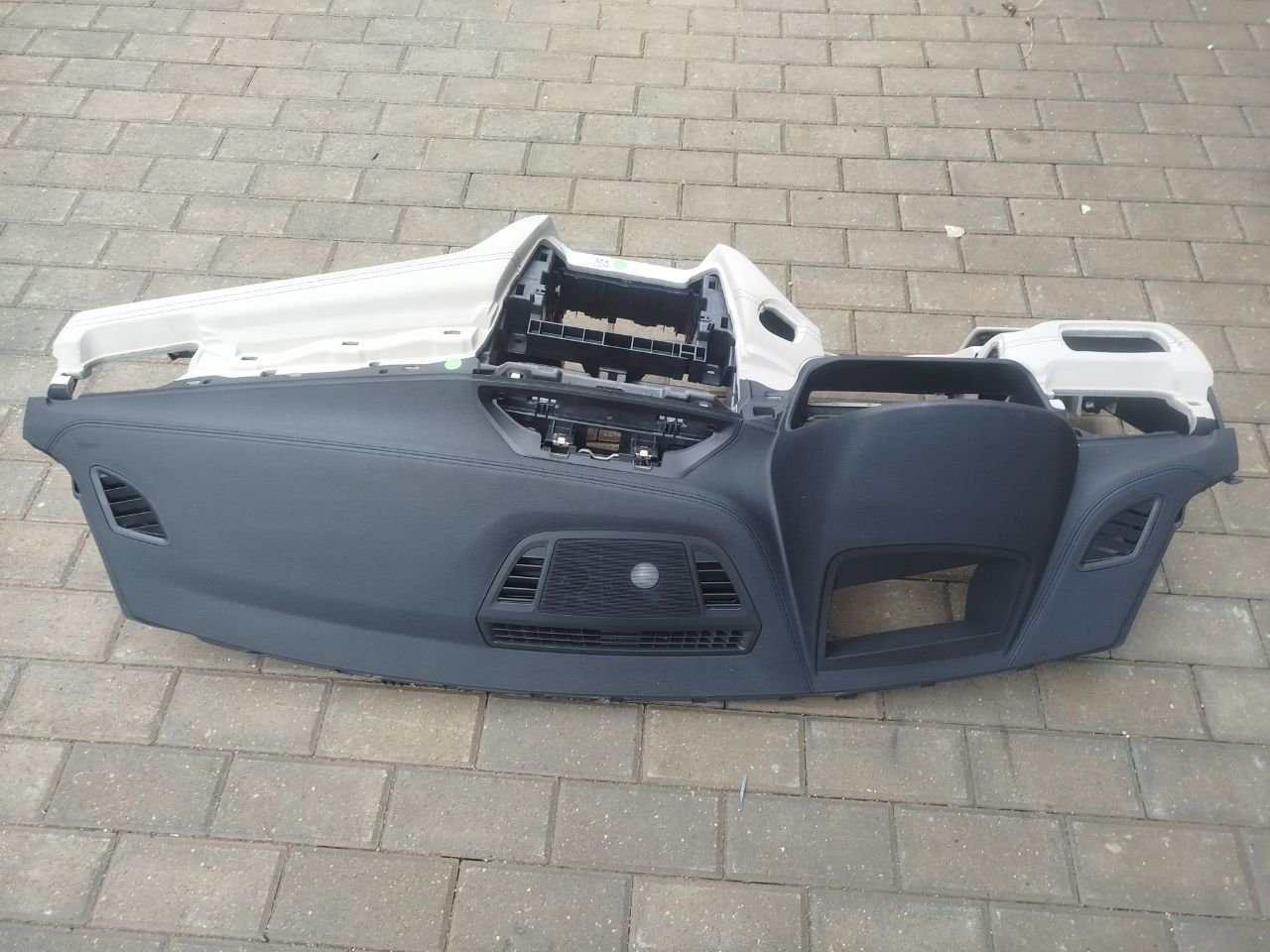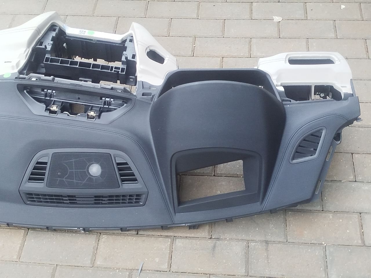 Под проекцию и динамик. Немного оплавлена в районе примыкания к лобовому стеклу (по центру), в остальном хорошее состояние, в сборе с подушкой безопасности. Дополнительные фото по запросу. Цена за торпедо с подушкой, без других комплектующих.