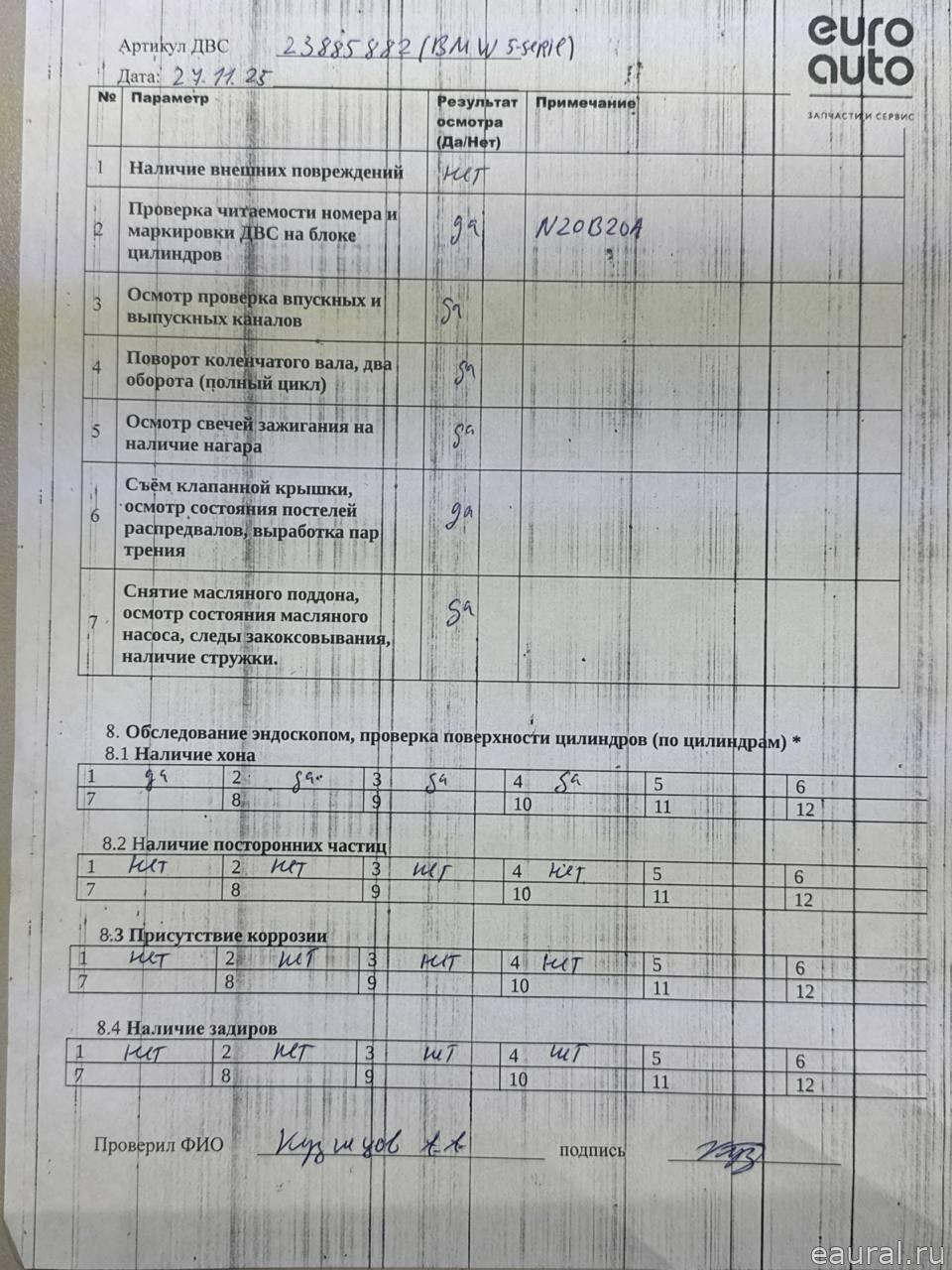 3.0л. 24v. 2010г. есть видеообзор двигателя и пневмо-теста герметичности камеры сгорания контрактный из японии есть сопроводительный пакет документов гтд n52b30a 11002208344