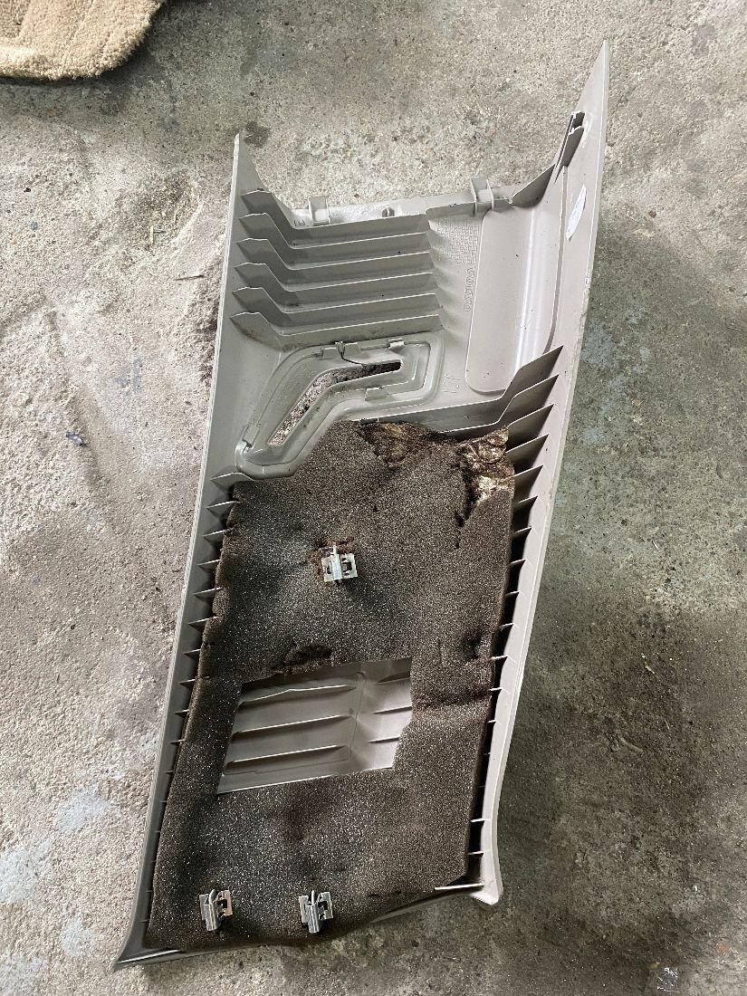 Обшивка (накладка) задней правой стойки, в хорошем состоянии с целыми клипсами (требуется чистка наружного тканевого покрытия)