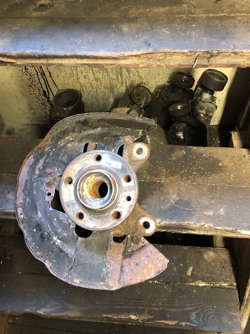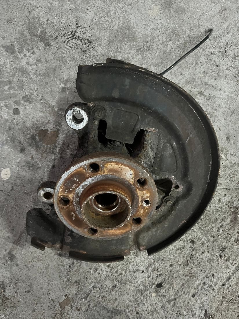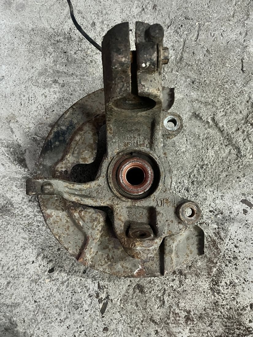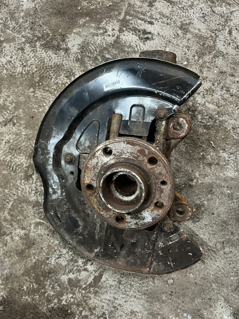 Комплект передних поворотных кулаков в хорошем состоянии, в комплекте с подшипником, цапфой и защитным кожухом.
