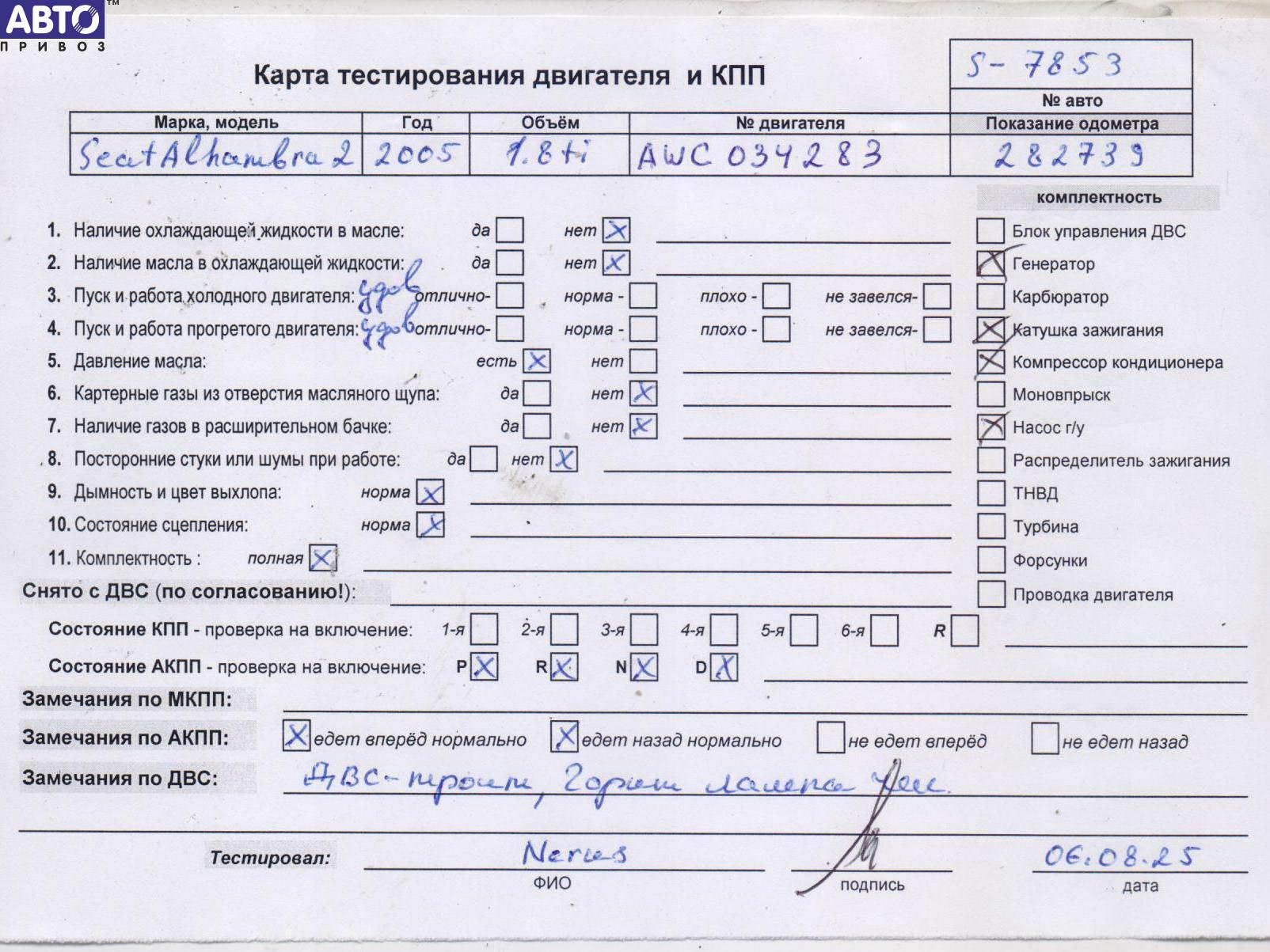 Двигатель Seat Alhambra (2000-2010), 2005