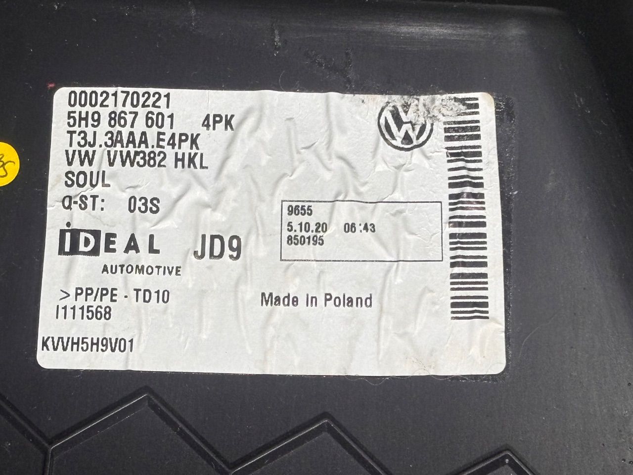 Пол багажника Volkswagen Golf 8, 2020