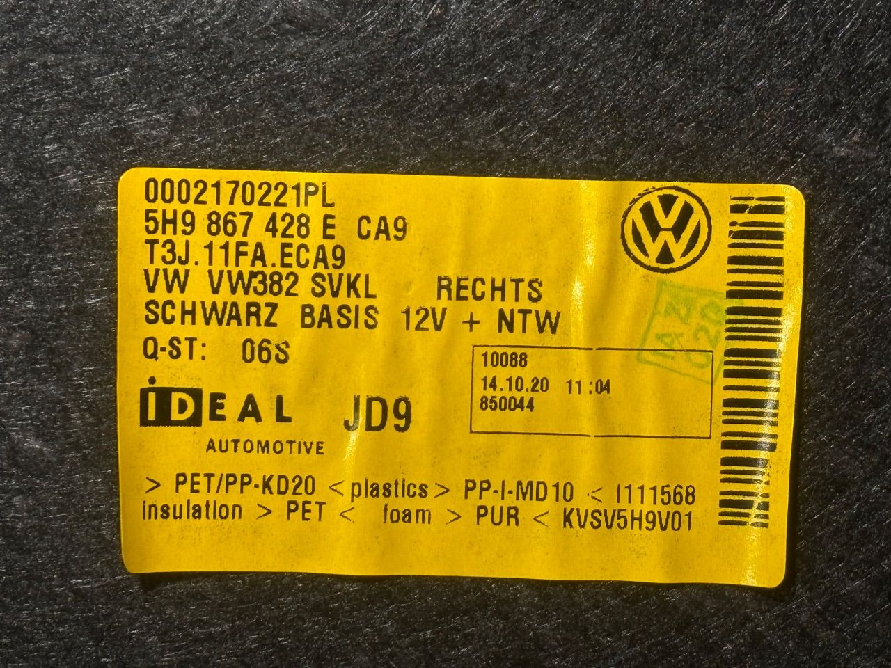 - Номера запчасти: 5Q1 721 059 HG 5Q0 927 810