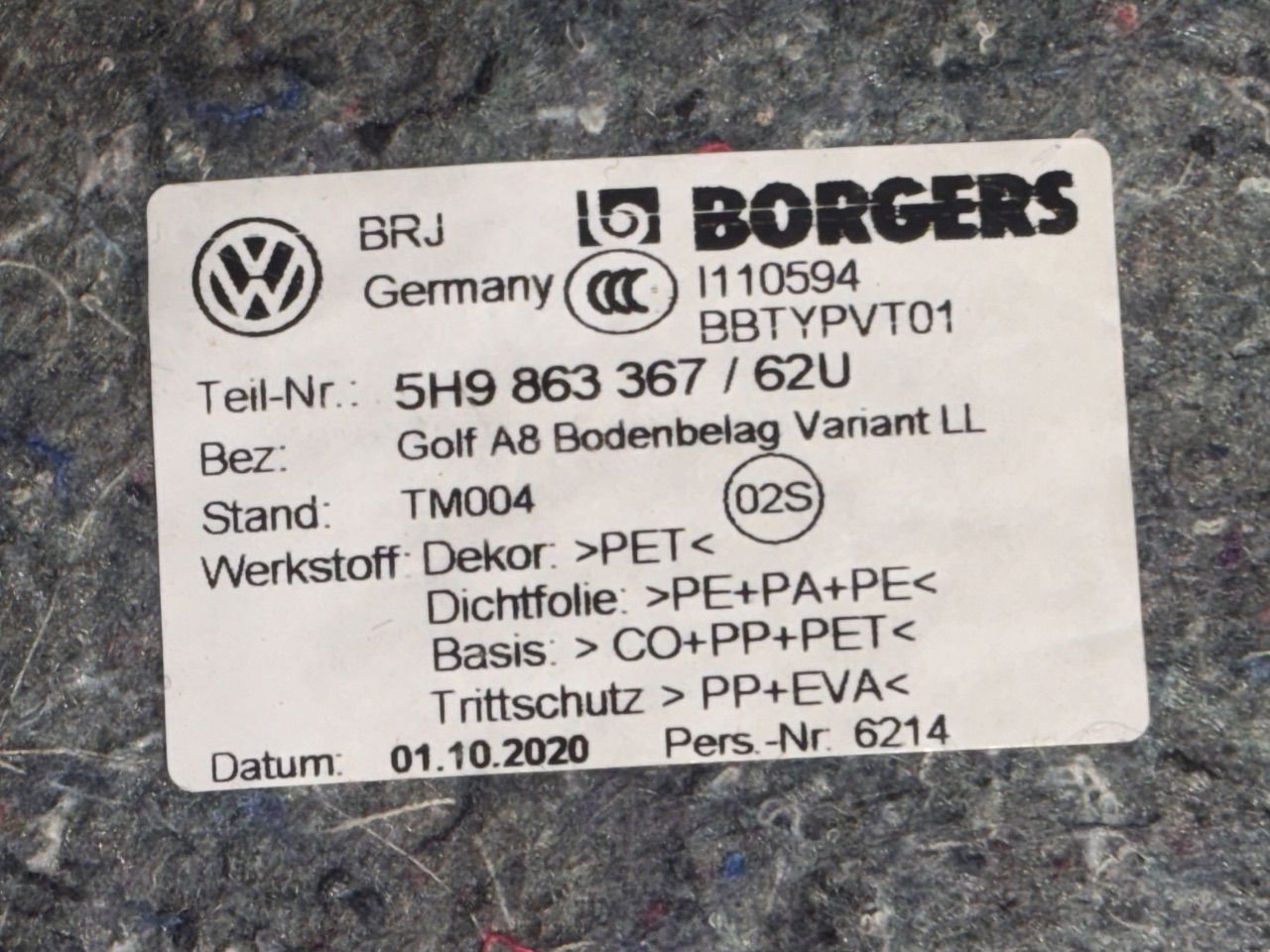 Ковер салонный Volkswagen Golf 8, 2020