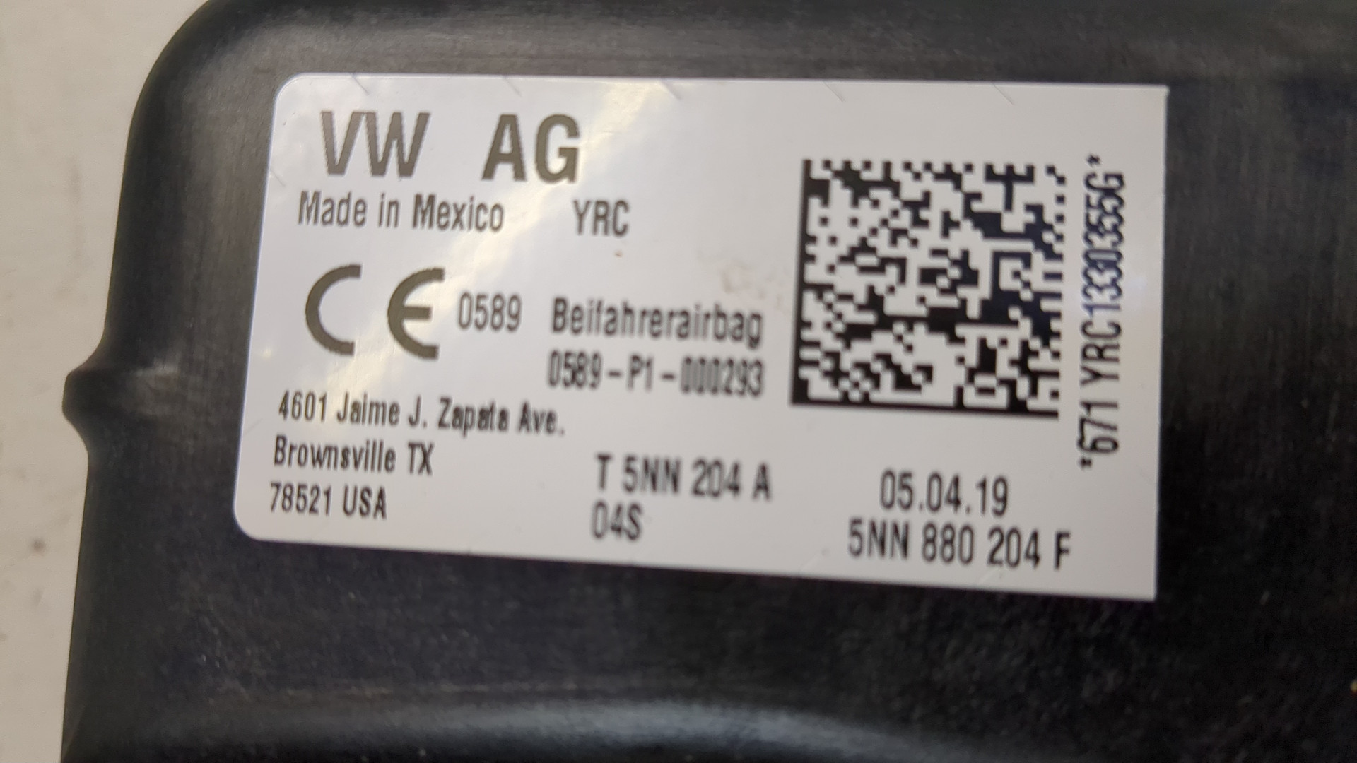 Подушка безопасности переднего пассажира Volkswagen Tiguan 2016-2021, 2019