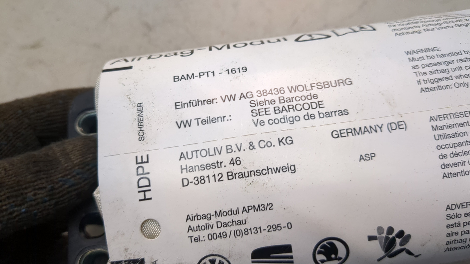 Подушка безопасности переднего пассажира Volkswagen Tiguan 2011-2018, 2014